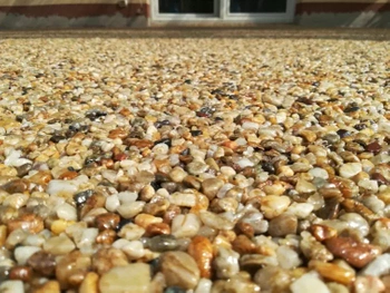 Żywice które nie są 100% UV, czyli żywice epoksydowe z upływem czasu zmienią odcień w kierunku koloru żółtego, przez co zmieni się również odcień kamiennego dywanu.