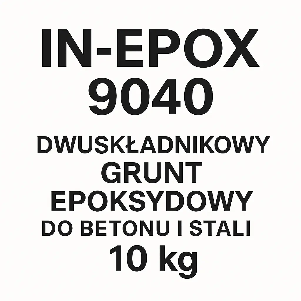 • Grunt epoksydowy IN‑EPOX PRIMER 9040 do betonu i stali,. 10 kg na ok. 33,33m2. Zużycie minimalne: 0,3kg/m2. Symbol:IN-EPOX 9040 GRUNT.