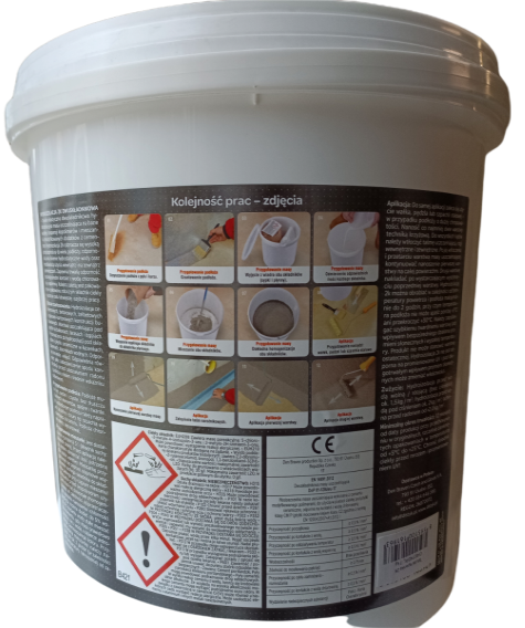 Dla ułatwienia na pojemniku jest obrazkowa instrukcja przygotowania hydroizolacji.