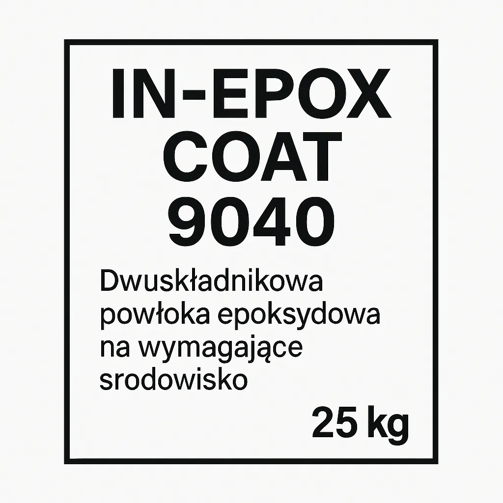 IN‑EPOX COAT 9040 to barwiona, dwuskładnikowa powłoka epoksydowa przeznaczona do aplikacji natryskowej lub wałkiem na beton i metal. Sprawdza się doskonale w środowiskach narażonych na agresywne chemikalia i wilgoć. Produkt dopuszczony do trwałego kontaktu z wodą pitną.