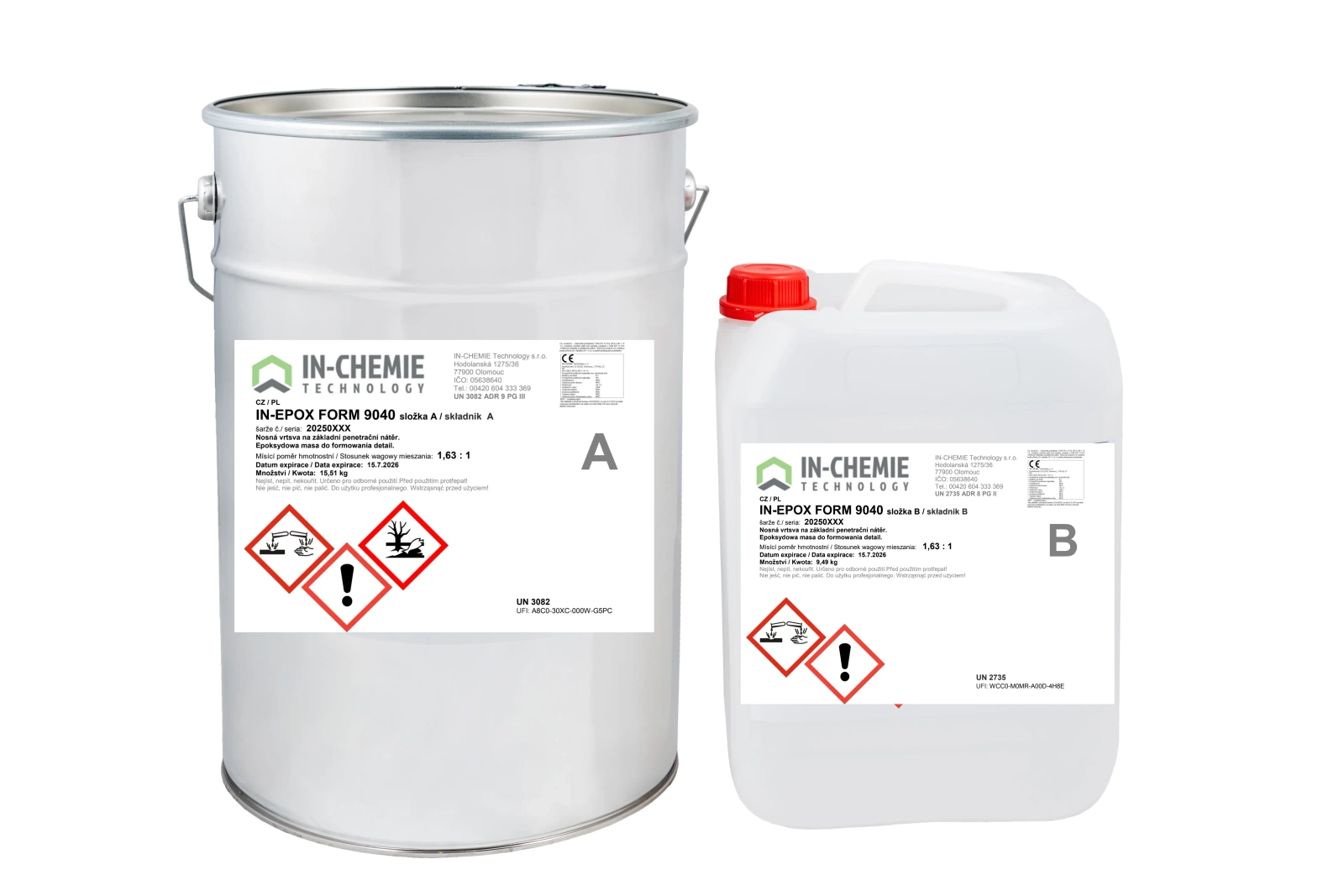 Proporcja mieszania: A : B = 1,66 : 1 (wagowo)