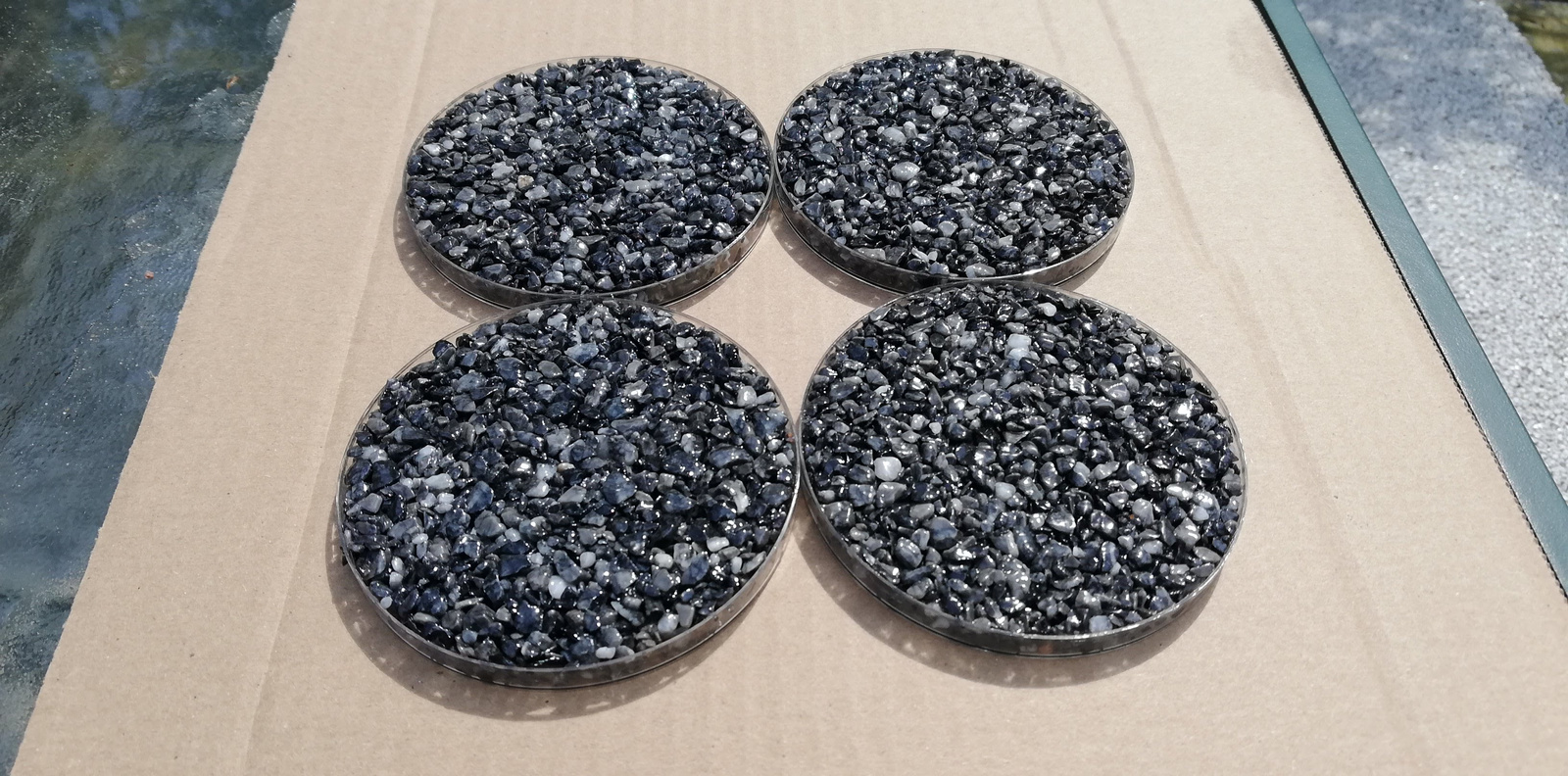 Spoiwo to jest Żywica epoksydowa, a kamień to marmurowy szary-antracyt Grigio Carnico o frakcji 3-6.