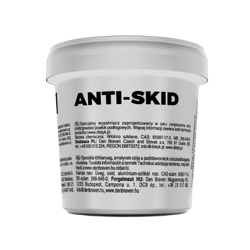 Zużycie : około 6-7% masy ANTI-SKIDU do żywicy ( na 1 kg żywicy 60 do 70 gramów ANTI-SKID)