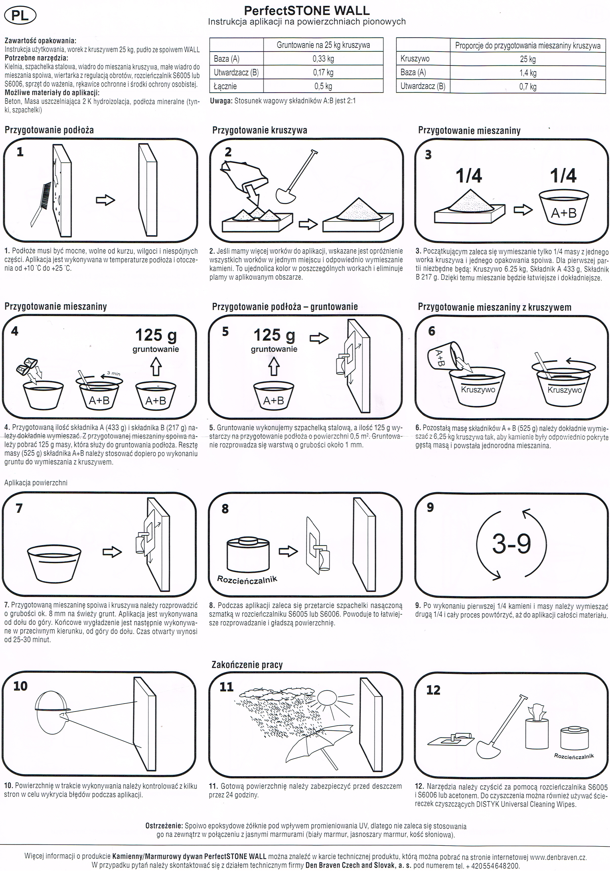 - Optymalna grubość warstwy wynosi około 8 mm, przy wydajności z worka (25kg) to są 2 m2