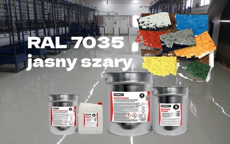 Zestaw żywic epoksydowych oraz płatki kolorowe z żywicą zamykającą na wykonanie podłogi z żywicy epoksydowej w kolorzez RAL 7035 (szarość ).
