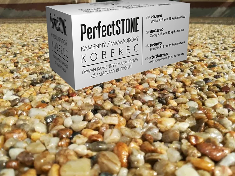 Proponowane komplety na kamienny dywan zawierające: specjalne spoiwa na kamienny dywan , a w innych opcjach również grunt a czasem hydroizolację